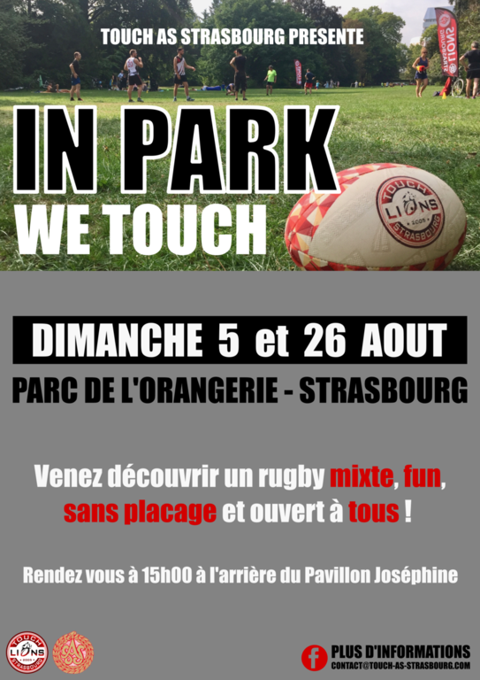 Cela se passe les dimanches de l'été à 15h00, sous réserve d'avoir assez de participants. Renseignements auprès de Thibault : thibault@touch-as-strasbourg.com